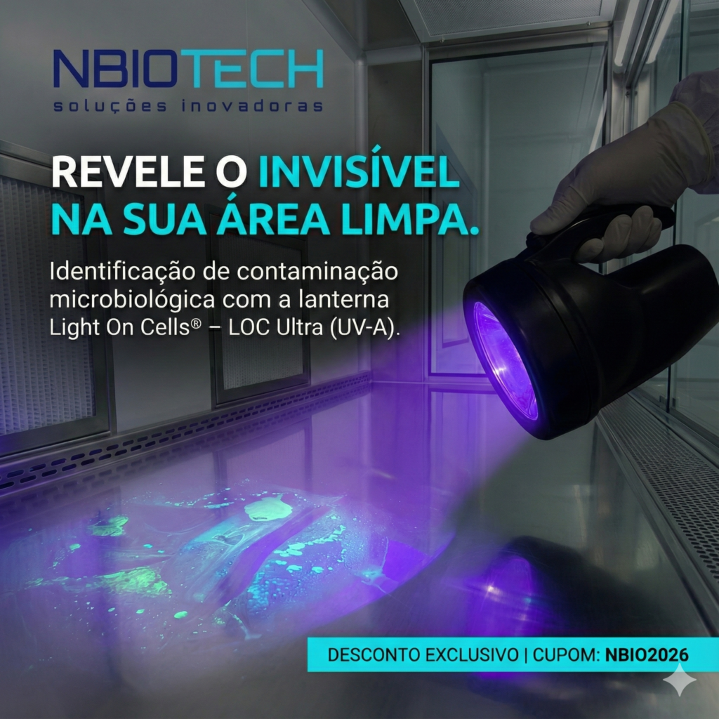 Nesse contexto, e suprimindo uma necessidade do setor, a lanterna Light On Cells® – LOC Ultra surge como uma ferramenta auxiliar na avaliação do visualmente limpo na validação de limpeza, baseada no princípio da fluorescência induzida por luz UV-A. O equipamento permite a evidenciação visual de resíduos orgânicos e biofilmes associados à contaminação microbiológica, ampliando a capacidade de detecção de falhas de limpeza, especialmente em áreas de difícil acesso.