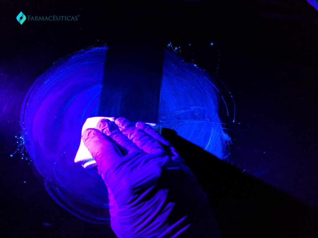 Algumas empresas utilizam laterna UV (“luz negra”) simples como método auxiliar para avaliação de resíduos de substâncias ativas/produtos e de agentes de limpeza associadas à soluções luminescentes, tais como soluções de riboflavina e fluoresceína. Mas até então, não havia qualquer tipo de técnica para auxiliar na avaliação de contaminação microbiológica.